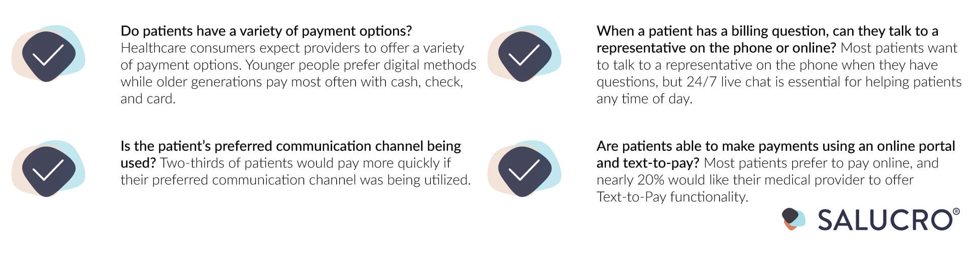 Salucro’s patient-first payment experience gives you the tools to delight your patients.
