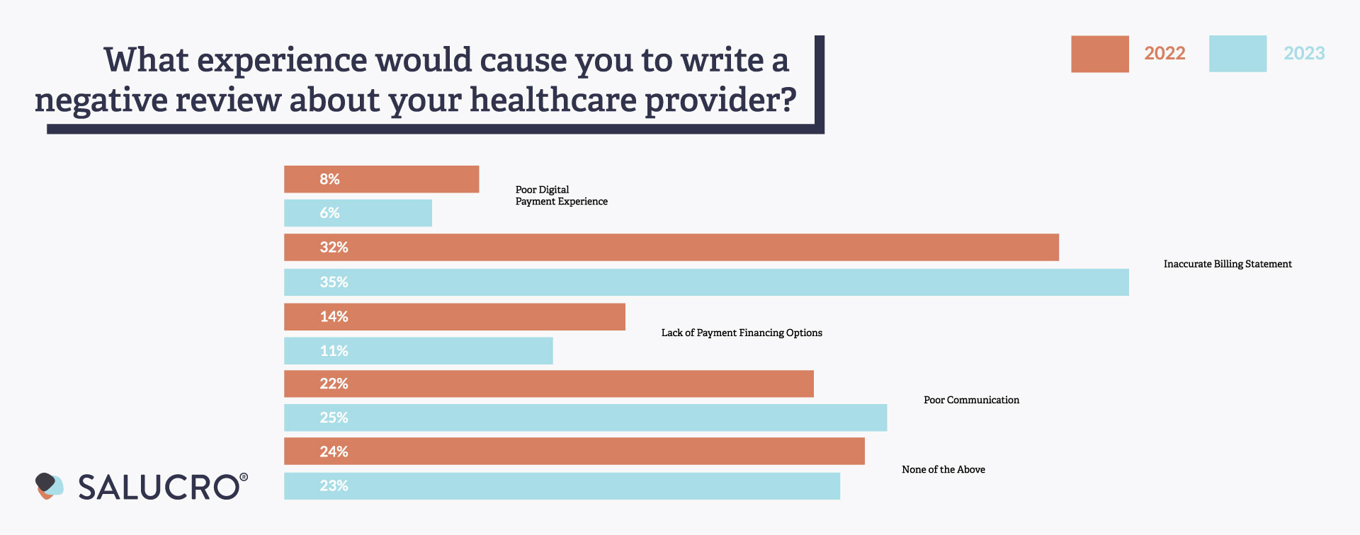 Salucro’s 2023 Trends in Patient Payment Communications report shows the significant impact that billing and communication practices have on patient loyalty and satisfaction. In a world where consumers have more choices than ever, it is essential for healthcare providers to continuously enhance their patient financial experience and communication strategies to retain patients and maintain their trust.