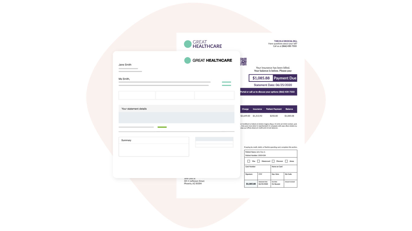 Designed to meet the patient where they are most likely to act, deliver print or digital statements that clearly and concisely communicate the balance due and available payment options. With configurable designs and options for guarantor-level billing, these fully branded statements help to make the billing process more patient-friendly.